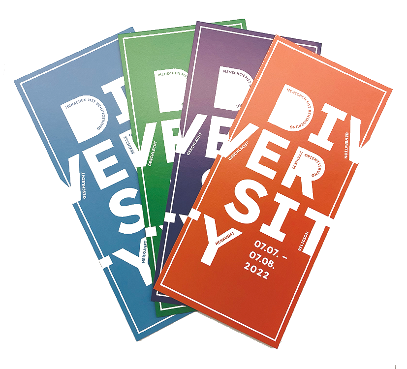 Besucher*innen der Ausstellung können sich über eine Interviewserie an sechs Stationen den verschiedenen Dimensionen von Diversität annähern und sich anhand von Erklär-Karten mit Definitionen zu verschiedenen Begriffen auseinandersetzen und für künftige Gespräche wappnen.